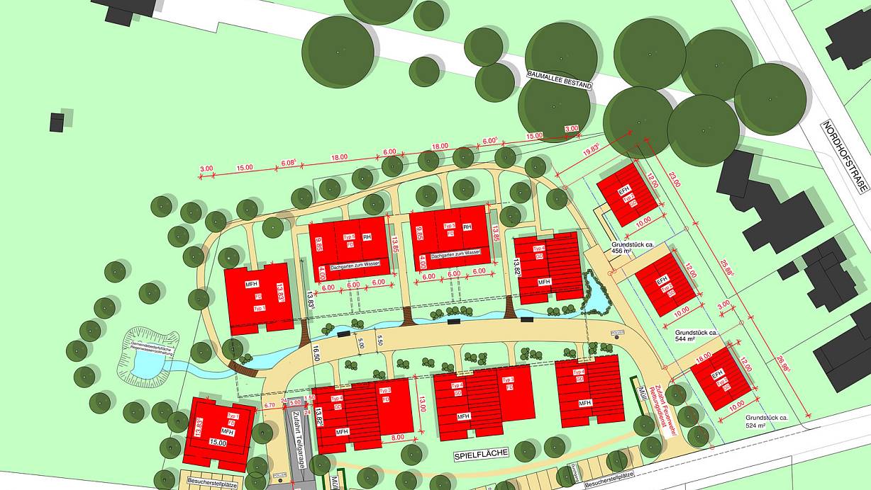 So soll das neue Wohnquartier aussehen. Unten verläuft die Brackfeldstraße, rechts die Nordhofstraße. | © Architektur- u. Planungsbüro Andreas von Unruh