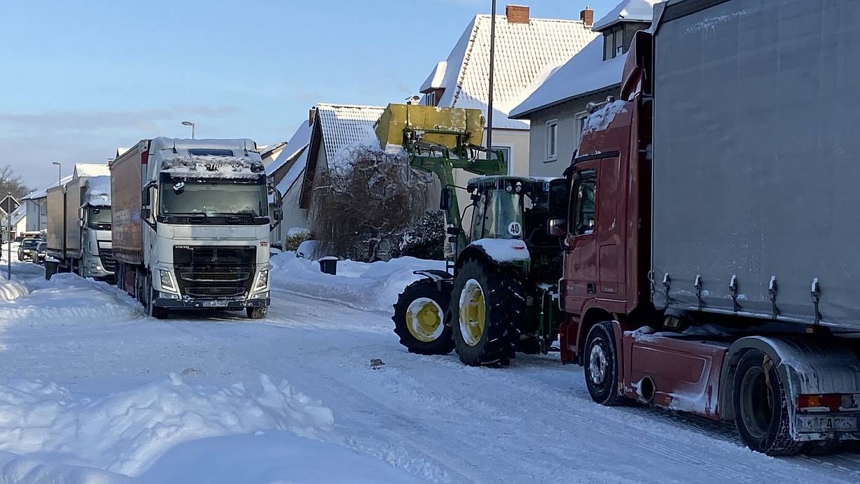 Wegen der Extremwetterlage kamen zahlreiche Lkw nicht voran oder standen schlichtweg in langen Staus. nw.de hat nachgefragt, wie sich das auf die Lieferung der Waren im Supermarkt auswirkt.