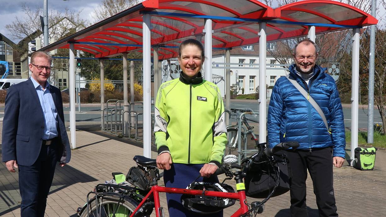 Angela Brüning und Uwe Diekmann (r.) vom ADFC, hier mit Bürgermeister Thomas Meyer, setzen sich für die Belange der Radfahrenden ein. | © Ekkehard Wind