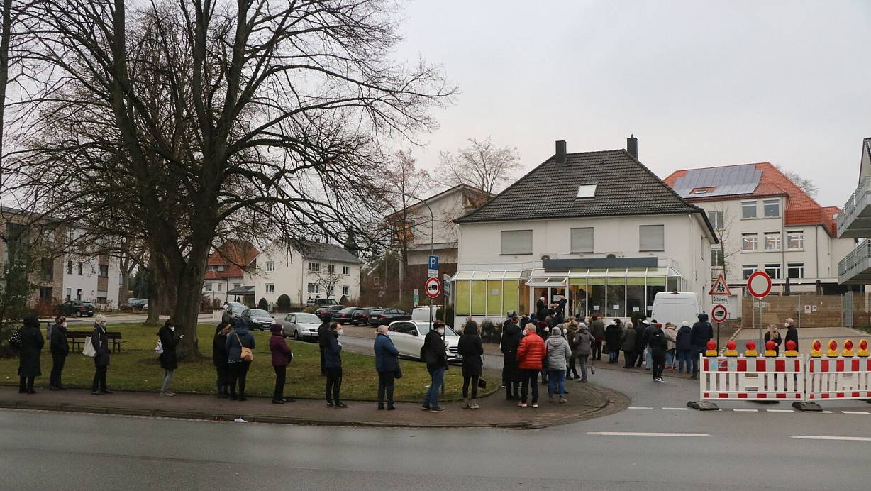 Eine lange Wartenschlange bildete sich vor der ehemaligen Bäckerei Tiemann. Die Stadt hatte vorsichtshalber die Windfeldstraße sperren lassen. | © Ekkehard Wind