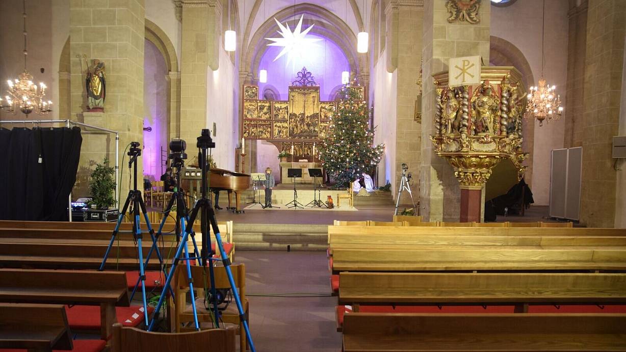 Sonst kommen jedes Jahr hunderte Besucher zum Timpkenfest in die Stiftskirche - im Januar 2021 mussten die Kirchenbänke leer bleiben. Der Gottesdienst wurde online übertragen. Dafür waren mehrere Kameras aufgestellt worden. | © Mareike Patock