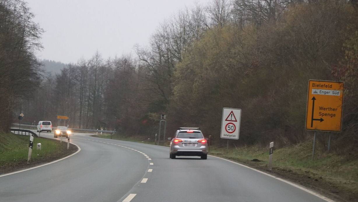 Immer wieder kommt es auf der Ostumgehung in Enger - an der Einmündung der Bielefelder Straße - zu schweren Unfällen. Als kurzfristige Maßnahme gilt hier jetzt Tempo 50.