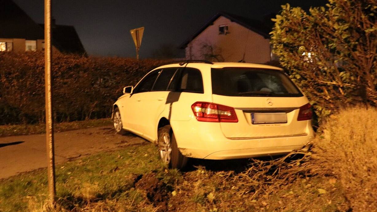 Der Fahrer dieses Mercedes ist mit seinem Wagen von der Straße abgekommen und in einem Vorgarten gelandet. | © Polizei Herford