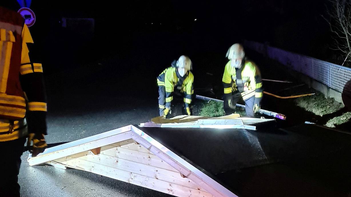 Das Dach einer Gartenhütte landete auf der Fahrbahn. | © Feuerwehr Enger