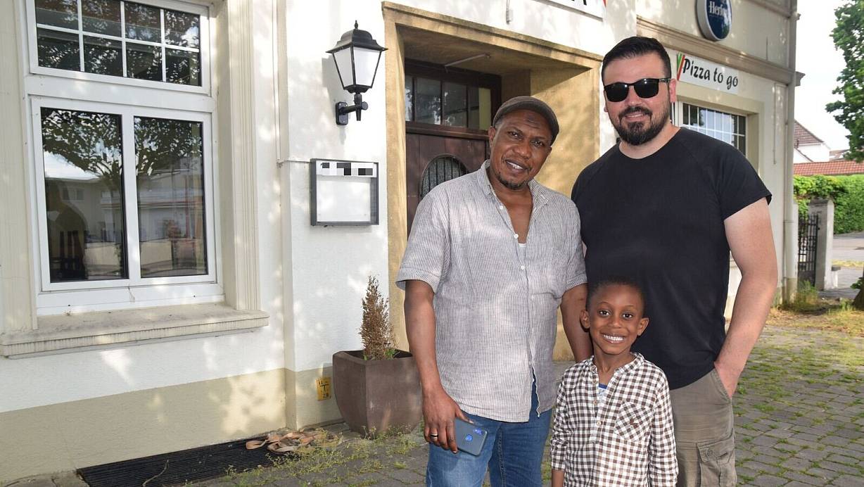 Yahouza Moukaila (v. l.), sein Sohn Imam und Gökhan "Göki" Samari vor der Gaststätte an der Bielefelder Straße, Bald wollen sie hier ihr "Ristorante del Piero" eröffnen. | © Mareike Patock