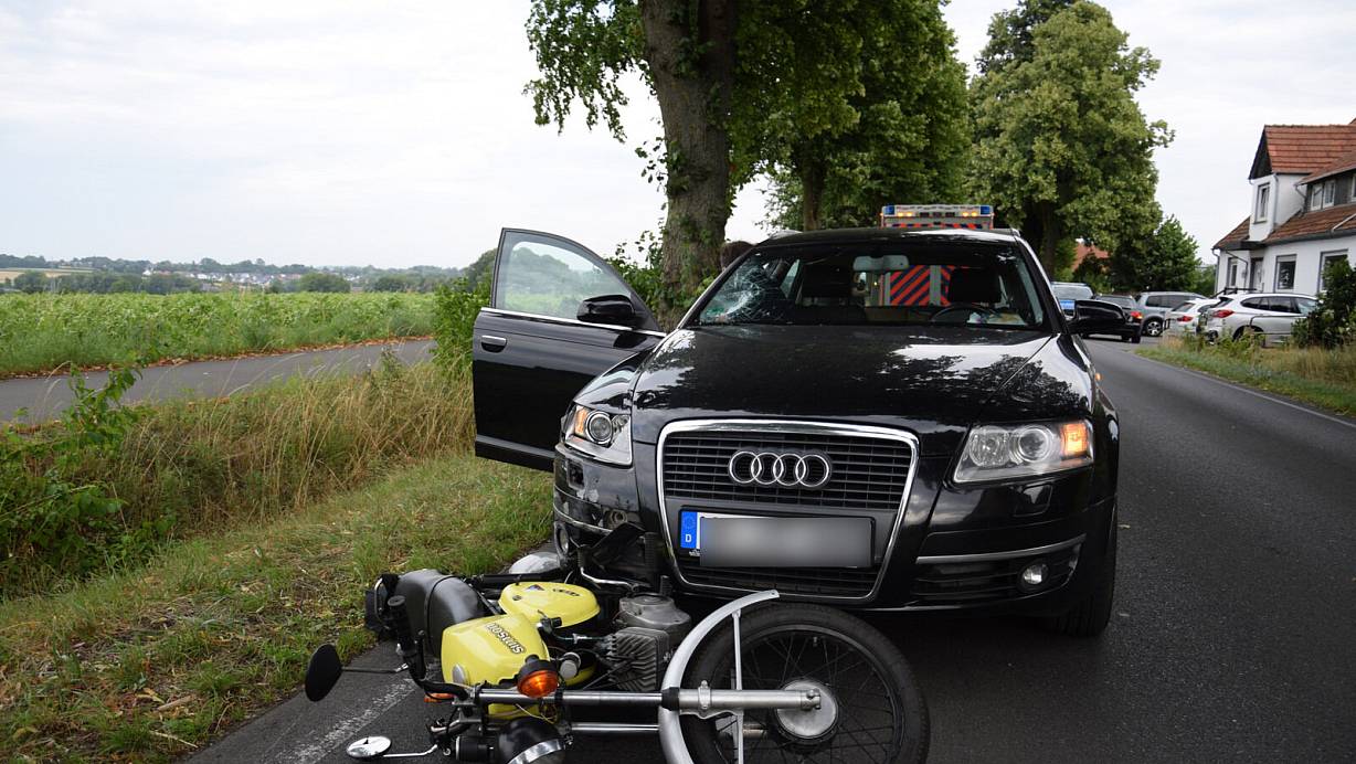 Gleichzeitig wollte jedoch der Fahrer eines schwarzen Audi den vor ihm fahrenden Simson-Fahrer überholen. Der 67-jährige Engeraner übersah, trotz gesetztem Blinker, das Abbiegevorhaben des Mopeds und stieß seitlich mit ihm zusammen. Durch die Kollision wurde der 28-Jährige von seiner Simson herunter geschleudert und blieb am Fahrbahnrand liegen, so die Polizei.