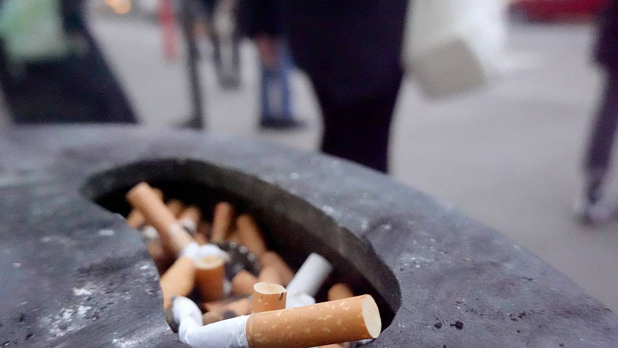 Zigarettenkippen liegen draußen in einem Aschenbecher. Innen darf nicht mehr geraucht werden. | © dpa