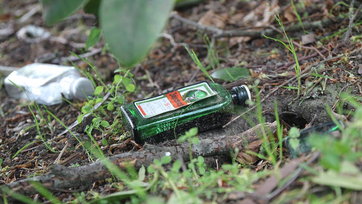 Fast 40 leere Alkoholflaschen liegen an dem Eingang zum Friedhof. | © Jan-Henrik Gerdener