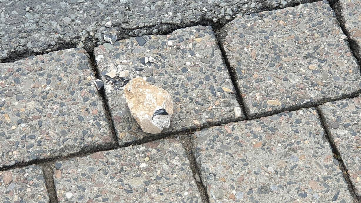 Auch wenn die Steine von der Straße geräumt wurden, sind am Straßenrand sind noch vereinzelte Steinbrocken zu sehen, die wahrscheinlich von der verlorenen Ladung stammen. | © Elena Ahler