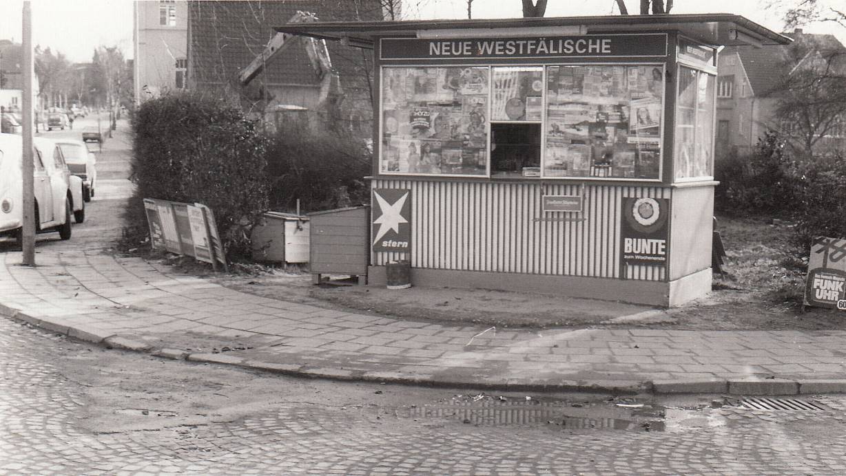 Der Kiosk am Kleinbahnhof 1975. Am besten wurden dort damals Zeitungen – unter anderem die Neue Westfälische – Zigaretten und „Flachmänner“ verkauft. | © Archiv Werner Brakensiek
