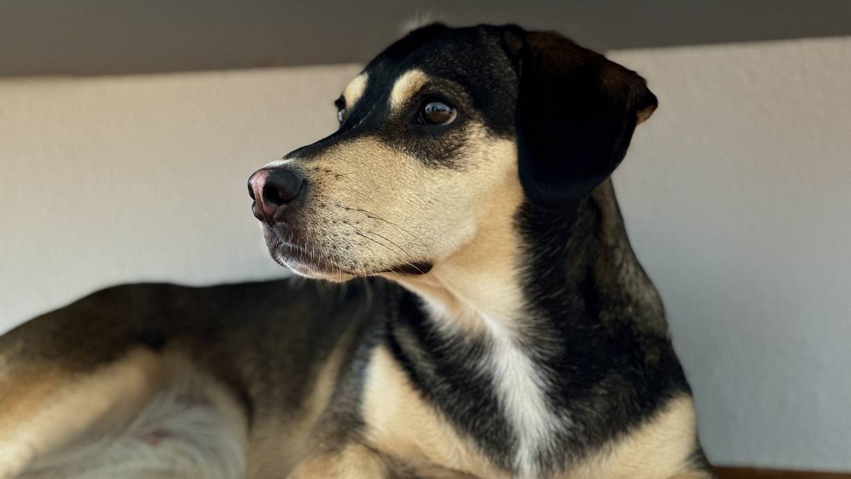 Mischlingshündin Tinka hat sich ein schattiges Plätzchen gesucht. | © Privat