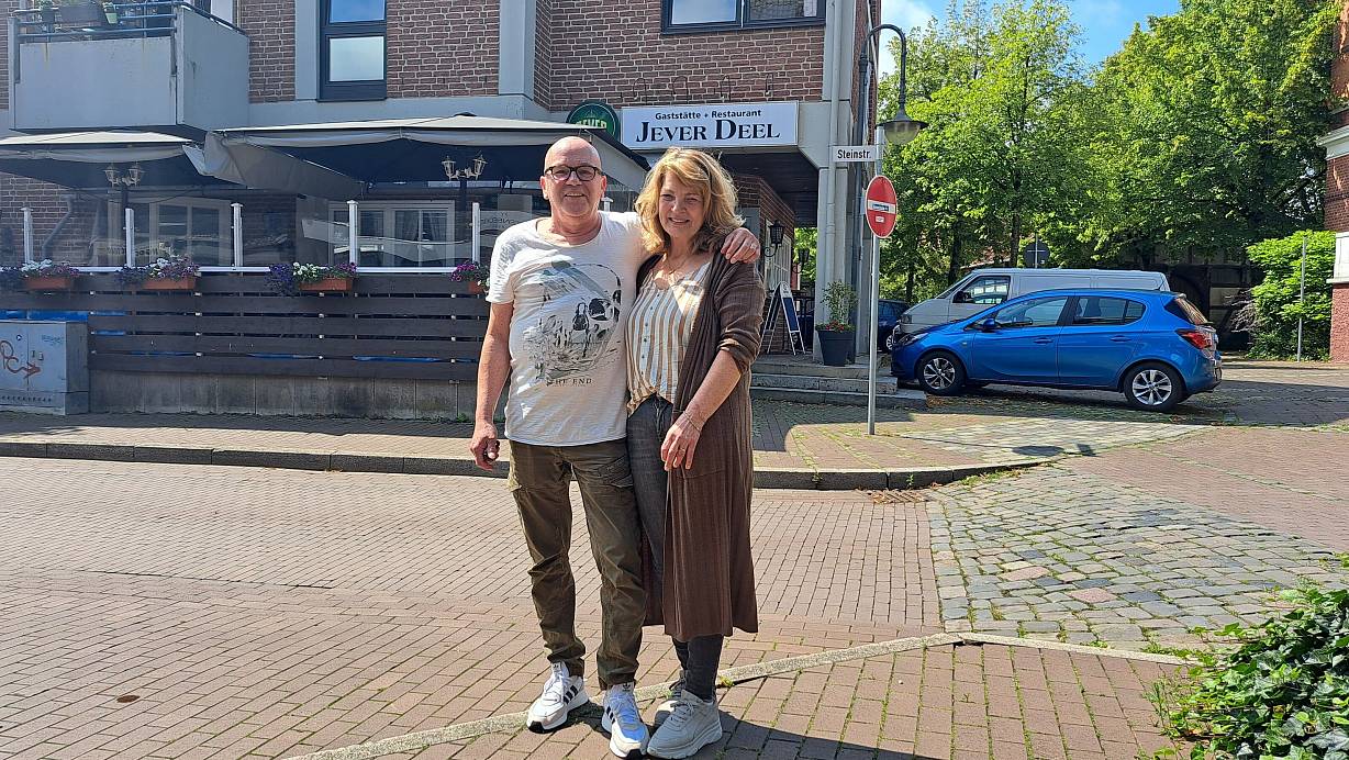 Wolfgang Lechtermann und Inhaberin Loni Meyer freuen sich auf die Feier in der "Jever Deel" am 4. August. Alle Einnahmen der Veranstaltung werden gespendet. | © Matthias Reiprich