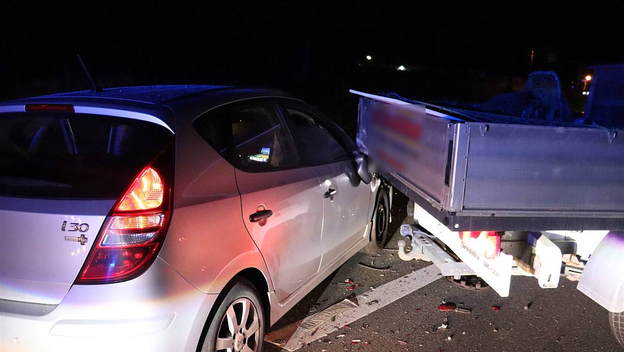 Ein hinter dem Sprinter befindlicher LKW-Fahrer konnte noch an der Absicherung langsam vorbeifahren. Ein 20-jähriger Mann aus Enger übersah den absichernden Sprinter jedoch zu spät und fuhr mit seinem Hyundai hinten auf.