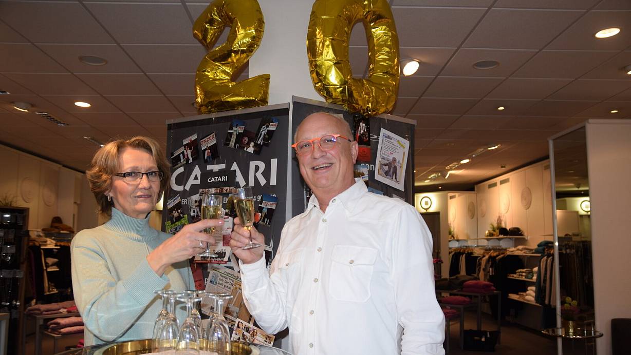 Regina Waite und Inhaber Jürgen Fellbaum stoßen auf das 20-jährige Bestehen von "Catari" an. | © Mareike Patock
