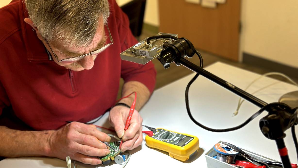 Mit ganz viel Fingerspitzengefühl: Wilfried Zurhorst versucht im neuen Repair-Café herauszufinden, warum der Trafo nicht mehr richtig funktioniert. | © Danielle Dörsing