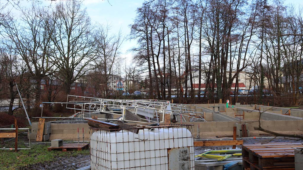 Seit dieser Woche gehen die Arbeiten an der Flüchtlingsunterkunft auf dem Jahnplatz weiter, nachdem dort vor kurzem ein Gerüst umstürzte.
