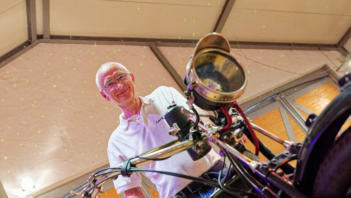Gerd Althoff freut sich über die zahlreichen Gäste bei der nunmehr 13. Ausstellung alter Motorräder im Engeraner Kleinbahnhof. Er steht hinter der alten FN aus dem Jahr 1918. | © Andreas Sundermeier