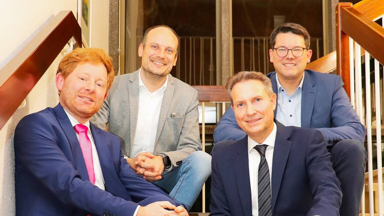 Das Wahlkampfteam der CDU um den Bürgermeister-Kandidaten Sefan Böske (vorne rechts) besteht aus René Siekmann (v. l.), Philip Kleineberg (hinten v. l.) und Joachim Ebmeyer. | © Andreas Sundermeier