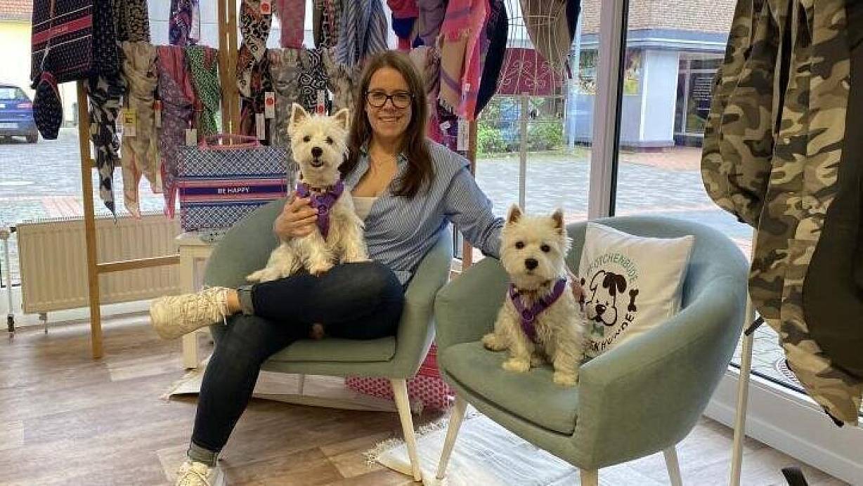Daniela Kleps mit Josi und Liza in ihrer "Pfötchenbude" an der Mathildenstraße in Enger. | © Lillia Seifert