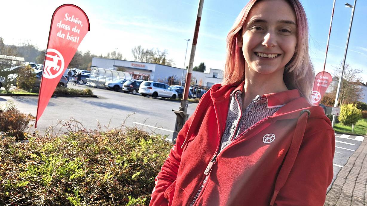 Mitarbeiterin Delizia Kehl freut sich am Montagmorgen über einen vollen Parkplatz vor „ihrem“ Rossmann in Enger. | © Meiko Haselhorst