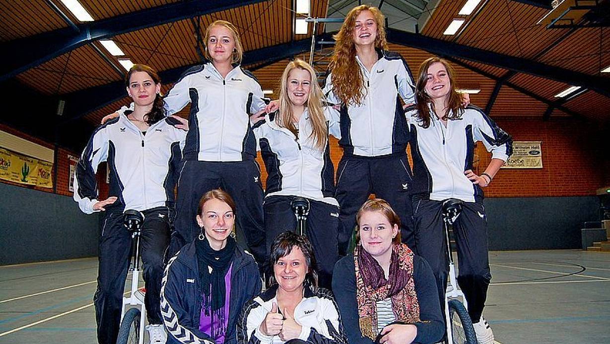 "Wir haben in der Anfangszeit auf Parkplätzen und auf Straßen geübt – aber die Bordsteine störten", sagt Sabine Buschmann schmunzelnd. Die Lenzinghausenerin, die 25 Jahre beim TVL Handball spielte, fragte schließlich bei ihrem Sportverein an, ob die kleine Gruppe nicht in einer Turnhalle Einrad fahren könnte. "Der Verein hatte zunächst Bedenken, dass die Reifen schwarze Streifen auf dem Hallenboden hinterlassen könnten", erinnert sich die Initiatorin.