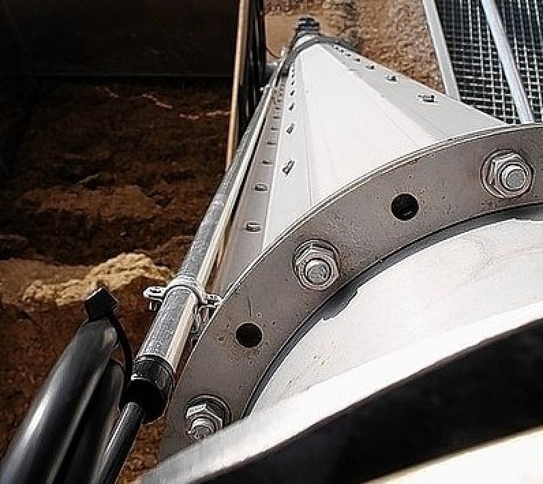 Die Strahler sind auch nötig, damit auch zu besonders früher und später Stunde gearbeitet werden kann. Denn die im Turm aktiven Bakterien brauchen rund um die Uhr Nachschub vom aus 70 Prozent aus Mais und aus 30 Prozent Gülle bestehenden Gemisch. Insgesamt 26 Kubikmeter werden dem insgesamt 3.600 Kubikmeter fassenden Fermentierer-Turm täglich zugeführt.