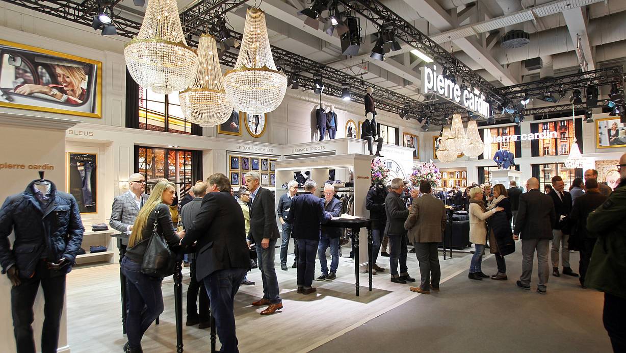 Opulente Kronleuchter, Bilder an den Wänden, warme Farben: Die Ahlers AG präsentiert ihre Top-Marke als „Appartement francais“. Mit „Liebe zum Detail“ will Pierre Cardin sowohl bei Frauen als auch Männern punkten: hier ein Bändchen an der Knopfleiste, dort eine farbige Naht oder kleine französische Flaggen am Revers. Das mache den unverwechselbaren, smarten Stil von Pierre Cardin aus, sagt Designerin Sibylle Badstieber. Farben sind im kommenden Herbst und Winter nicht so stark vertreten, aber doch stärker als in der vergangenen Wintersaison. Blau dominiert bei Sakkos wie bei Hemden, aber auch Rottöne von Lila bis Pflaume sind vertreten – vor allem bei den Hemden.