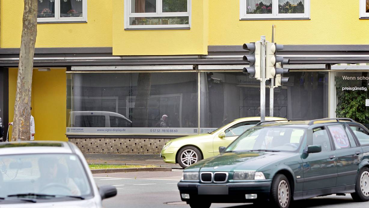 Schwarze Bildschirme im Ladenlokal: Das Unternehmen "Signo Display" darf an der Berliner Straße in Herford nicht mehr werben. Angeblich gefährden die Displays den Verkehr. | © Foto: Frank-Michael Kiel-Steinkamp