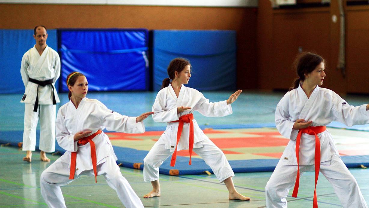 Und die Mädchen machten ihre Sache gut. Die Bewegungsabläufe im Kata waren in der Präzision kaum von ihrem Shotokan-Lehrer zu unterscheiden, naturgemäß aber in Kraft und Dynamik. Inhaltlich wird Karate vor allem durch Schlag-, Stoß-, Tritt- und Blocktechniken sowie Fußfegetechniken als Kern des Trainings charakterisiert.