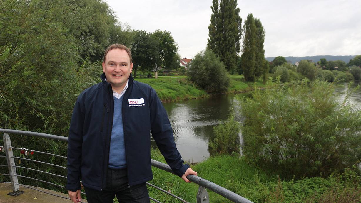 Lieblingsplatz im Wahlkreis: Tim Ostermann steht am Weser-Werre-Kuss in Bad Oeynhausen. Dort mündet die Werre in die Weser. | © Dirk Windmöller