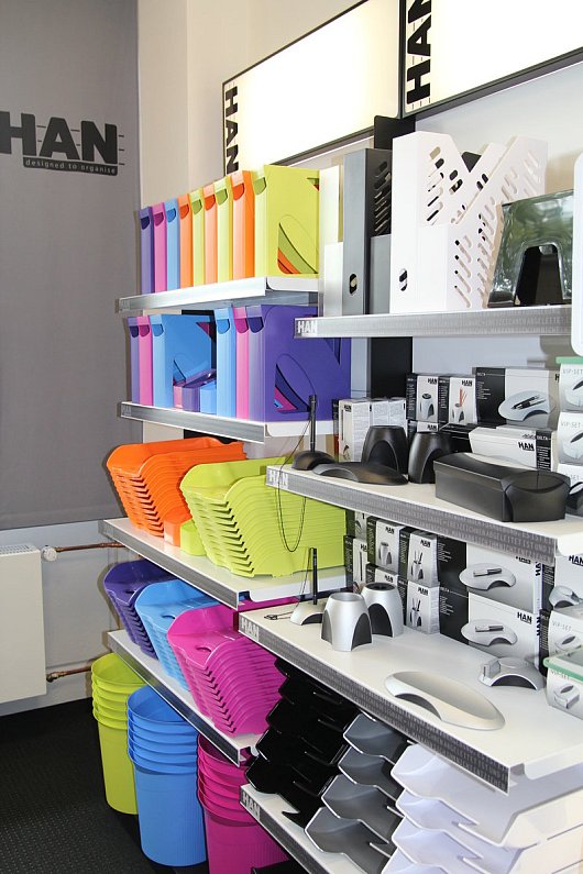 Das sind einige der Produkte, die die Firma Han-Bürogeräte am Standort Herford herstellt. Das Unternehmen produziert in erster Linie Ordnungs- und Bürobedarf und vertreibt die Produkte an den Facheinzelhandel.