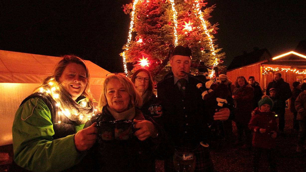 Herford. Zum dritten Mal feiern die Elverdisser ihren Weihnachtsmarkt auf dem Dorfplatz. Zu Apfelpunsch und Schmalzbroten, Glühwein und ungarischen Lángos trat zum Auftakt am Freitagabend mit Dirk Schmitz ein Dudelsackspieler an, der wie alle anderen Beteiligten in Elverdissen lebt. Am Samstag beginnt der Weihnachtsmarkt um 15 Uhr.