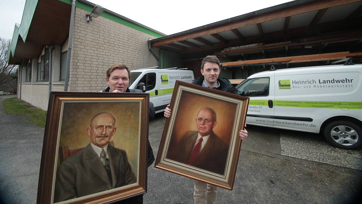 Herford. Wenn sich Heinz Landwehr mit seinem Sohn Tobias im Büro aufhält, dann blicken zwei weitere Landwehr-Männer der Familie auf sie herab. Als Porträt-Gemälde hängen sie an der Wand, ein weiterer Heinz und Heinrich Landwehr. Sie haben in Tobias Landwehr ihren Nachfolger gefunden. In 4. Generation übernimmt der 31-Jährige die Heinrich Landwehr Bau- und Möbelwerkstatt an der Ahmser Straße in Herford.