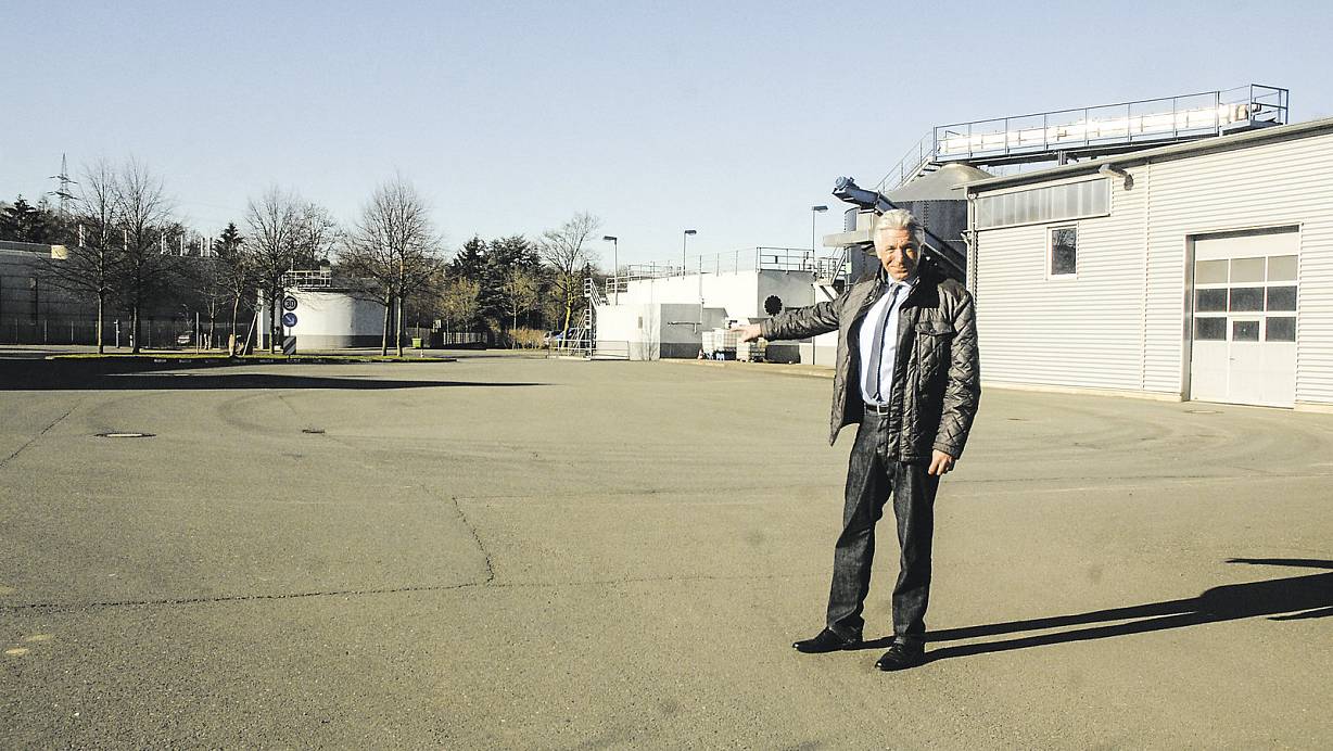 Hier wird das neue Gebäude stehen: Gerhard Altemeier, Chef der IAB Abwasser Herford, geht davon aus, dass die Bauarbeiten spätestens Mitte April beginnen können. Der Auftrag für die technische Ausstattung soll jetzt ausgeschrieben werden. | © Natalie Gottwald