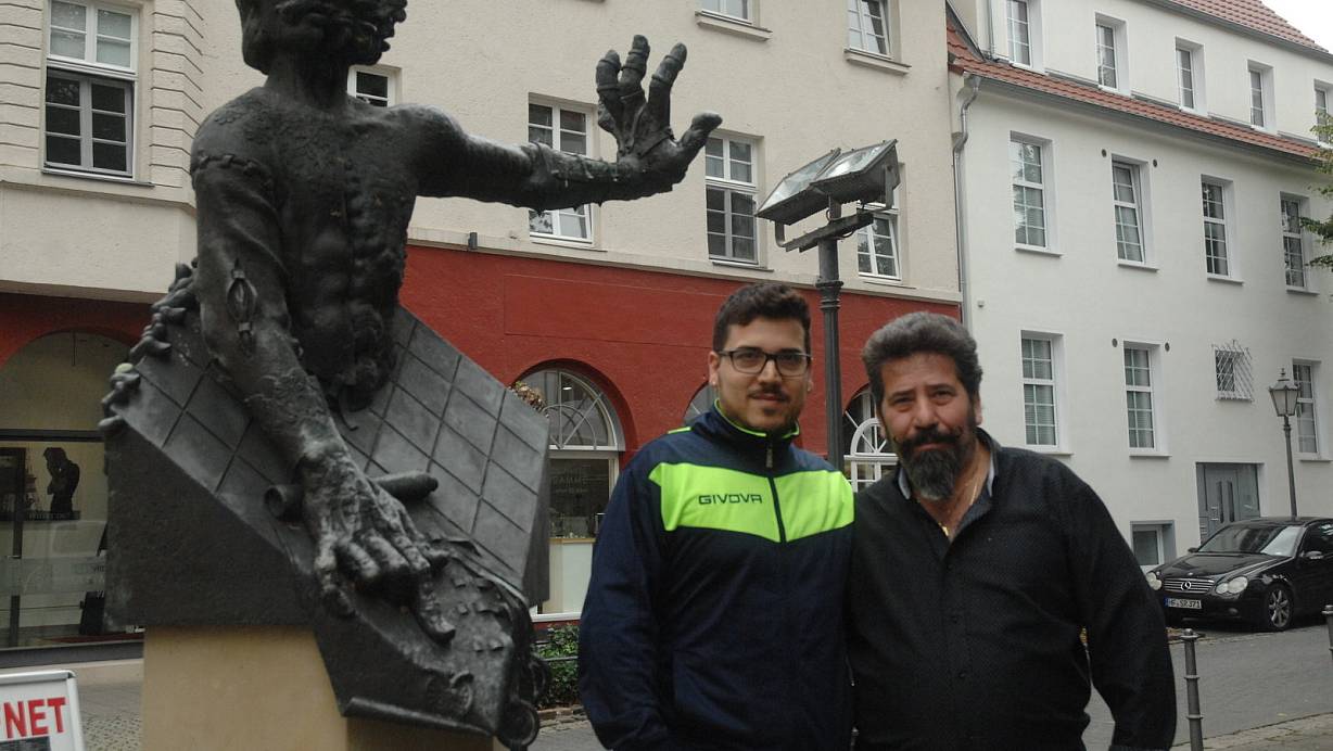 Giuseppe (l.) und Cosimo Argentiero auf dem Fürstenau-Platz: Hier soll am 1. August das "Il Baffino" neu eröffnet werden. Cosimo Argentiero ist übrigens der Namensgeber für das Restaurant: baffino heißt nämlich Bart auf italienisch. | © Natalie Gottwald