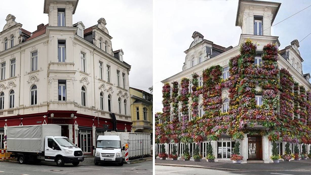 Tausende Blüten sollen die Fassade des "Schiller" in Herford schmücken