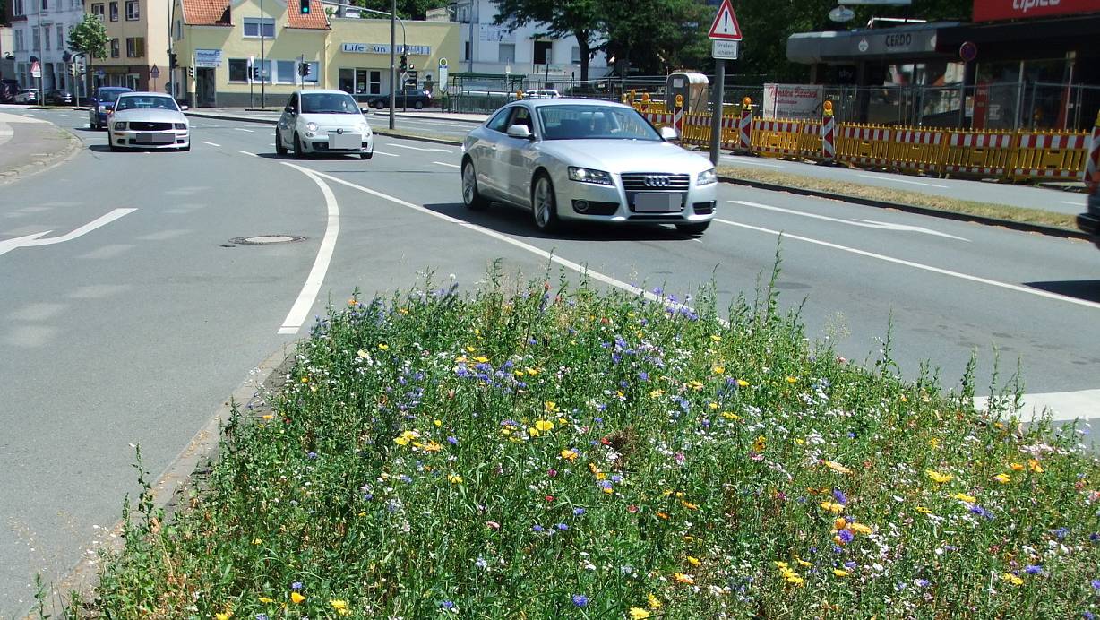 Bienen- und Augenweide: Die Blühstreifen in der Herforder Innenstadt. | © Eike J. Horstmann