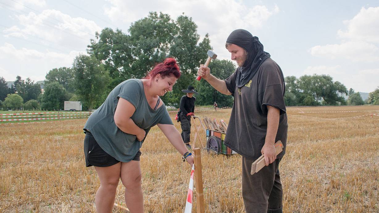 Charline und Thomas bereiten die Parkplätze vor. Auch während des Festivals sind sie vor Ort. Bands sehen sie meist nicht. | © Ralf Bittner