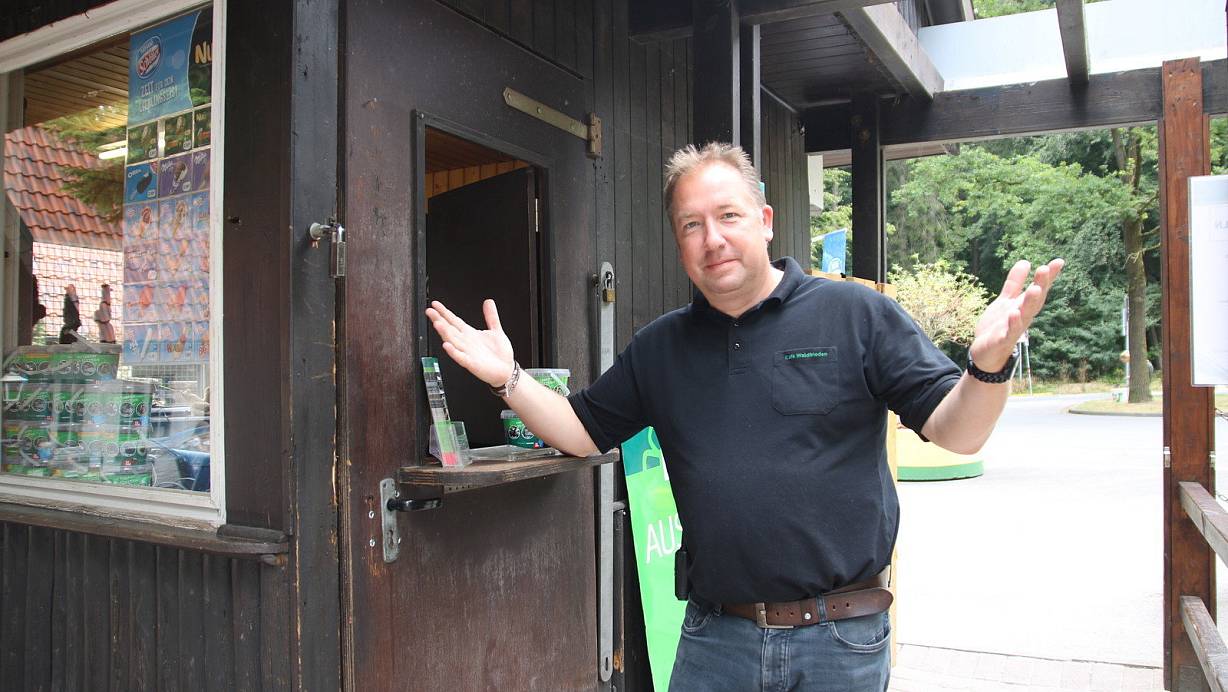 Tierparkleiter Thorsten Dodt neben dem Kiosk. Er kann den Einbruch nicht nachvollziehen. Foto: Elena Ahler | © Elena Ahler