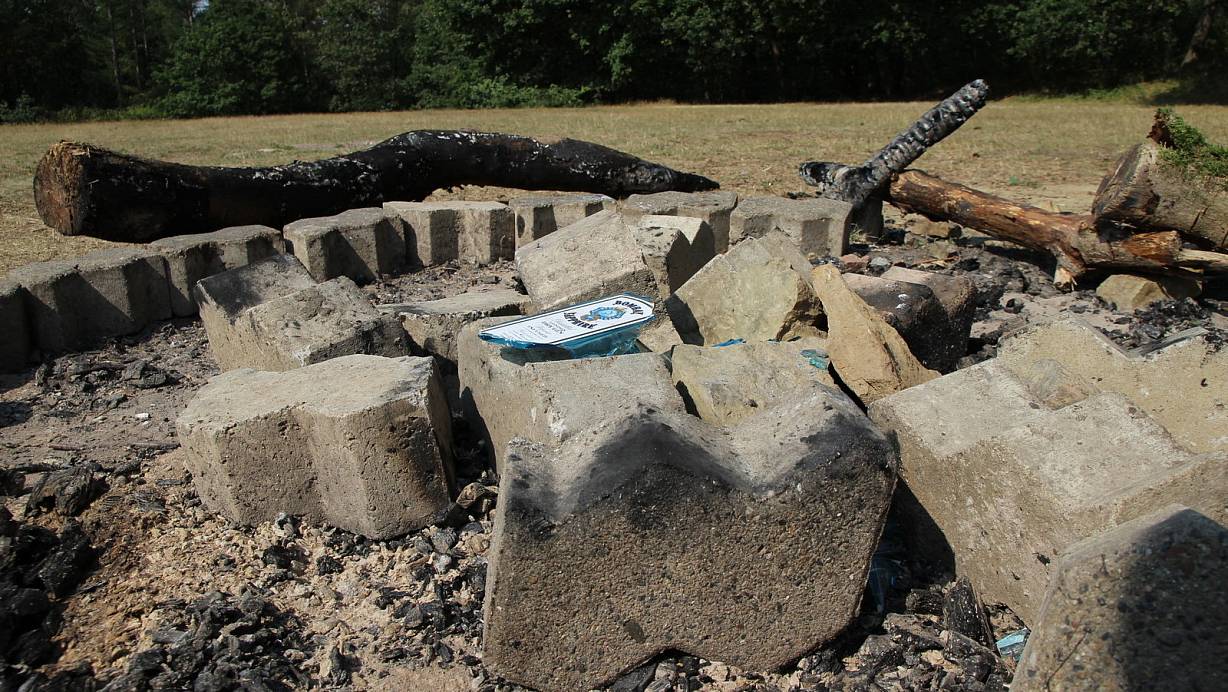 Unbekannte haben am Bismarckturm trotz der Trockenheit ein Lagerfeuer gemacht – die Reste davon geben einige Rätsel auf. Ein angekokelter Stamm wurde sogar bis zu den angrenzenden Bäumen gebracht.