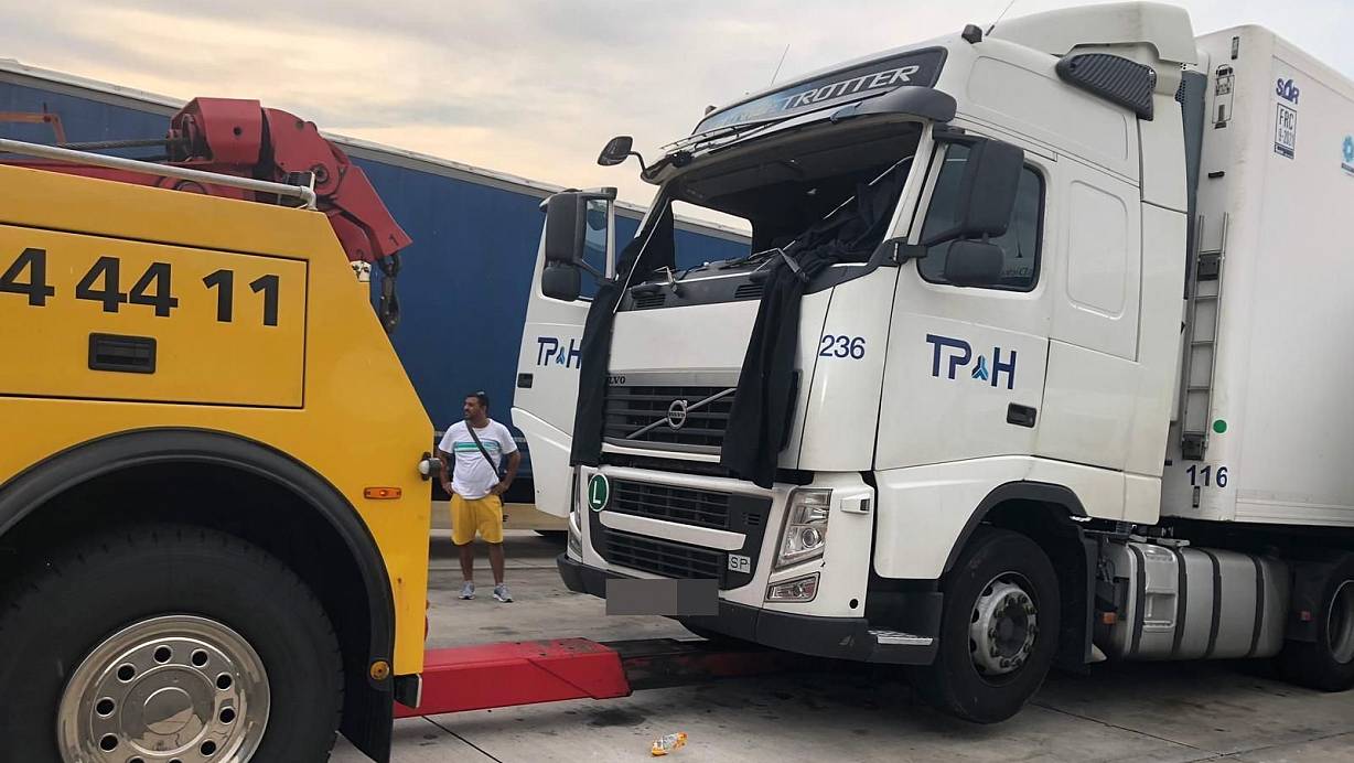 Die Frontscheibe des LKW ist durch die Wucht der Explosion herausgeschleudert worden. | © NW