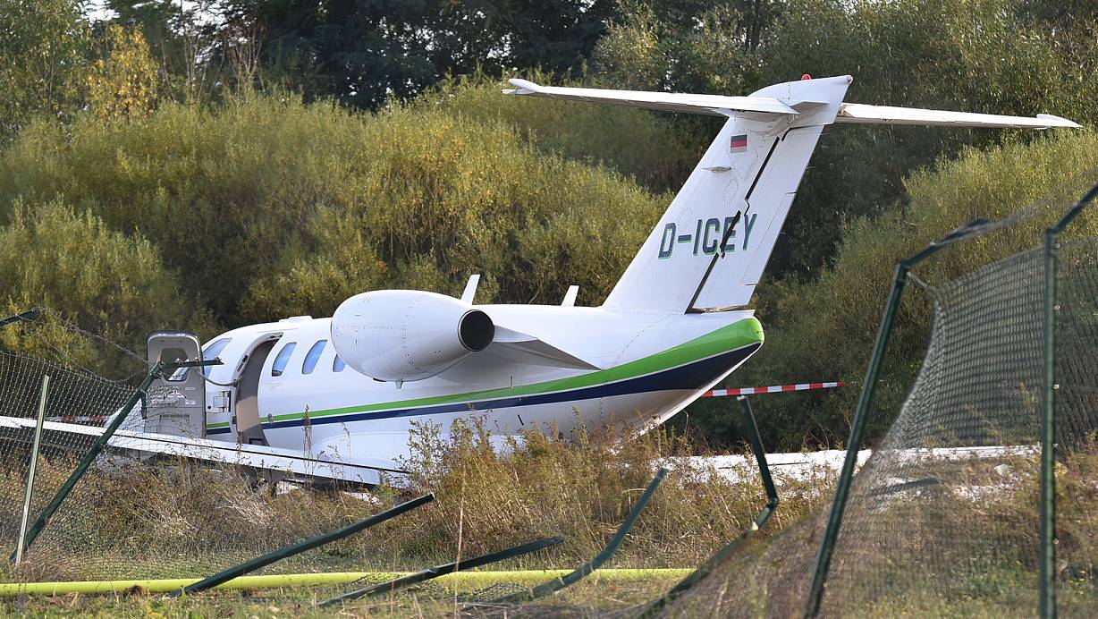 Laut Medienberichten soll der Privatjet bei der Landung rund 200 Meter eines Maschendrahtzauns aufgerissen haben und dann in ein Feld gerutscht sein.