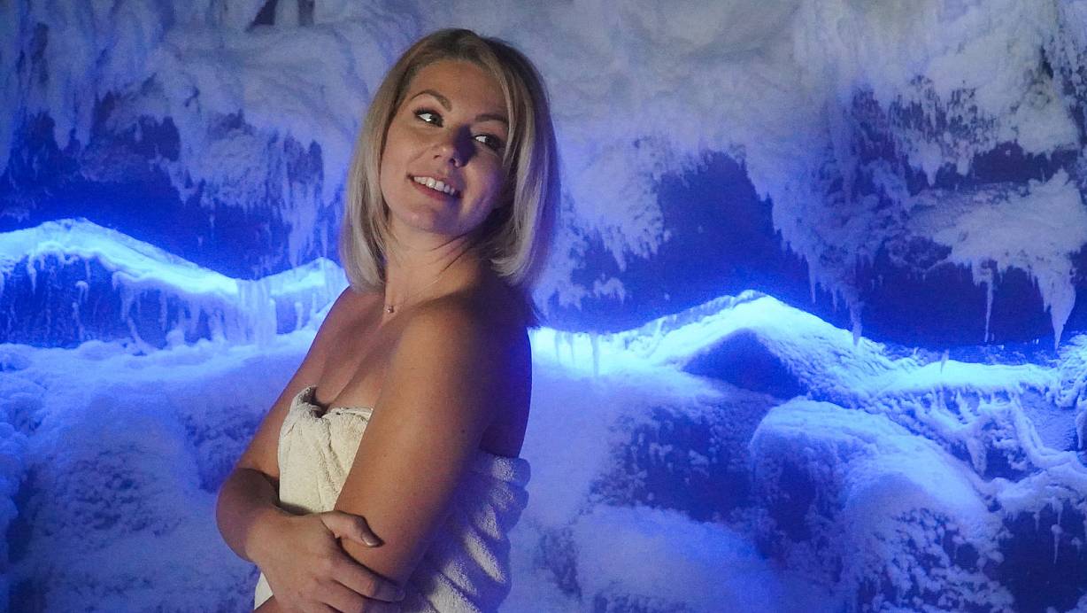 Model Anna Schröder testet schon mal den neuen Schneeraum, der am Freitag im H2O eröffnet wird. | © Thomas Dickenbrock