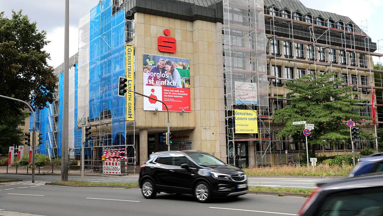 Vor dem Verkauf: Die ehemalige Hauptstelle der Stadtsparkasse an der Berliner Straße wird derzeit saniert. | © Frank-Michael Kiel-Steinkamp