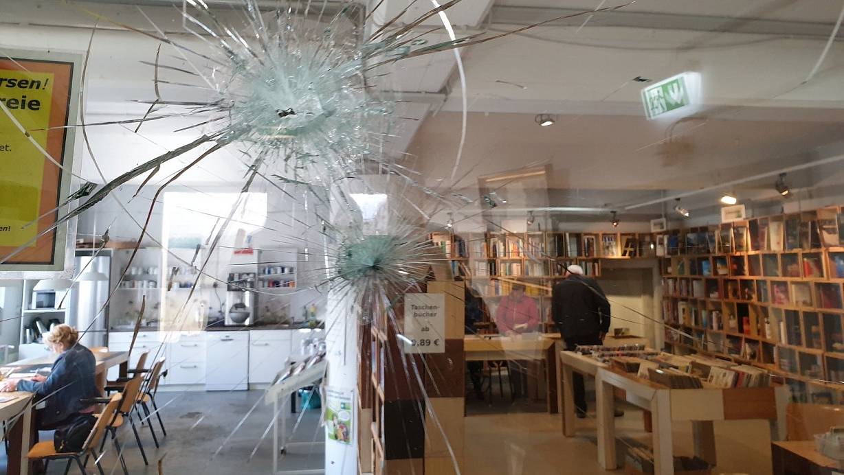 Fensterscheiben sind eingeschlagen und eine Tür mit einem Gullydeckel zerstört worden. Wieder gibt es am Second-Hand-Kaufhaus einen hohen Sachschaden zu beklagen.