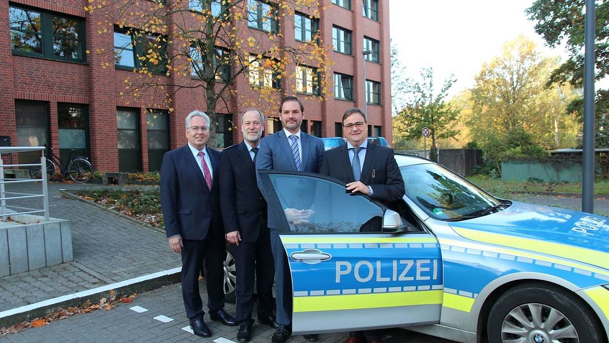 Kreis Herford. Seit September sind sie im Amt, jetzt wurden sie offiziell von Landrat Jürgen Müller und Polizeidirektor Dirk Zühlke in ihren neue Positionen begrüßt: Marcus Tarrach (46), der künftig als Kreisverwaltungsrat die Direktion Zentrale Aufgaben bei der Kreispolizei leiten wird, und Kriminaloberrat Peter Lehmann (43), der als neuer Chef der Direktion Kriminalität im Wittekindsland vorsteht und Nachfolger von Markus Altenhöner wird und zeitweise eine besondere Position bei der Polizei in NRW bekleidete.