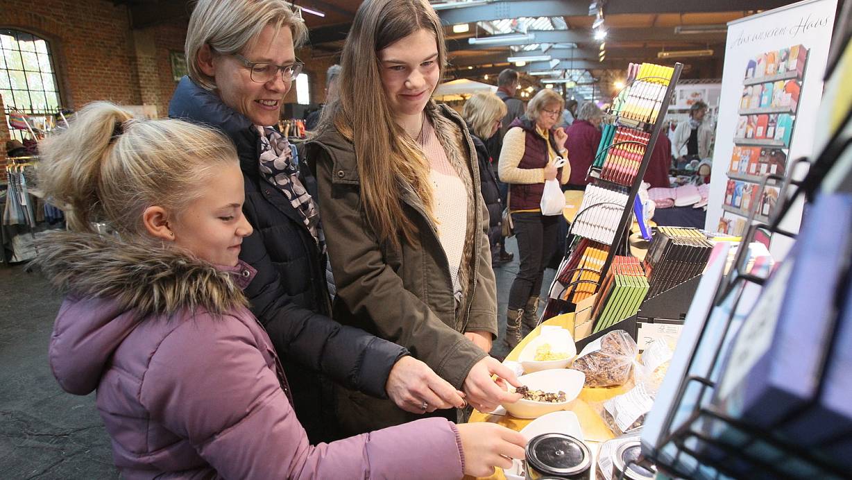 Herford. Süße Bananen-Chips, grüne Wasabi-Erdnüsse oder geröstet Sonnenblumenkerne. Sieglinde Römer kann sich gar nicht entscheiden. Nur die Ingwerstücke mag sie nicht. „Die sind mir zu scharf", sagt die Seniorin aus dem lippischen Leopoldshöhe, die mit Tochter Bärbel und Enkelin Lara am Stand vom Bremer Gewürzhandel stoppt, um im alten Herforder Güterbahnhof das vielseitige Angebot der Lifestyle-Messe „Herbstzeitlos" zu genießen. Tochter Bärbel hat ihren Mann zuhause gelassen, „damit der auch einmal seine Ruhe hat". Denn die Schau ist fast fest in Frauenhand.