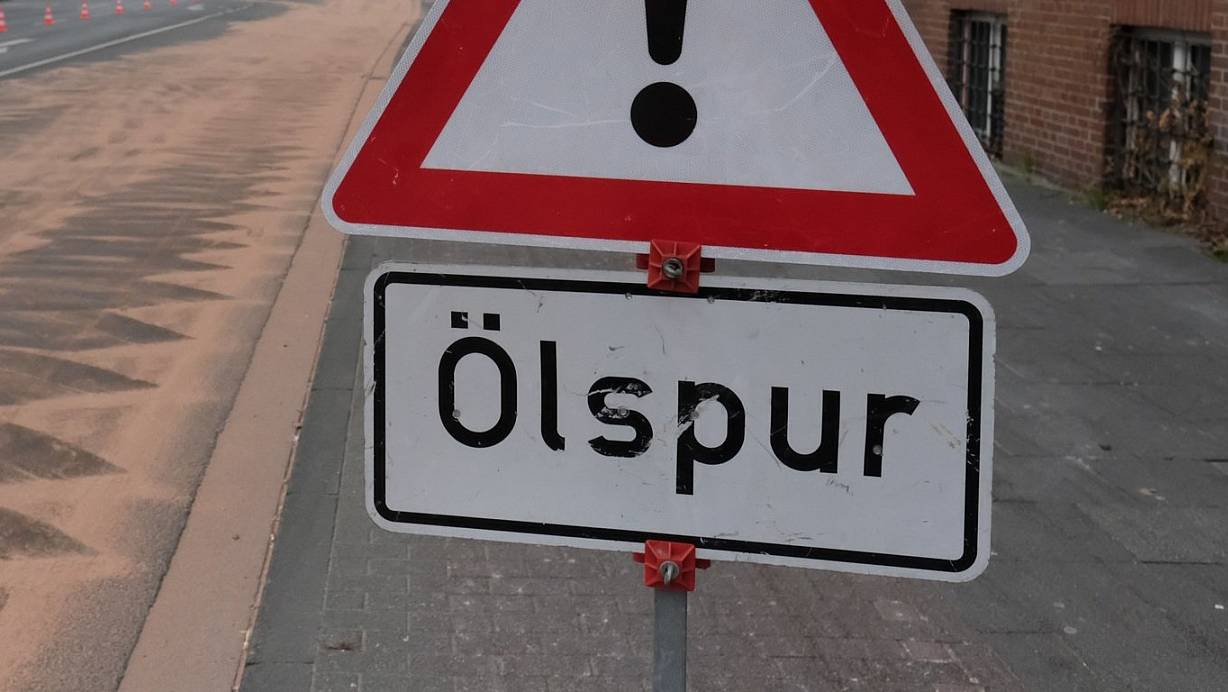 Bei der Unfallaufnahme wurden die Polizisten auf die Ölspur auf der Fahrbahn aufmerksam. Die Fahrbahn musste durch die Feuerwehr gestreut werden.