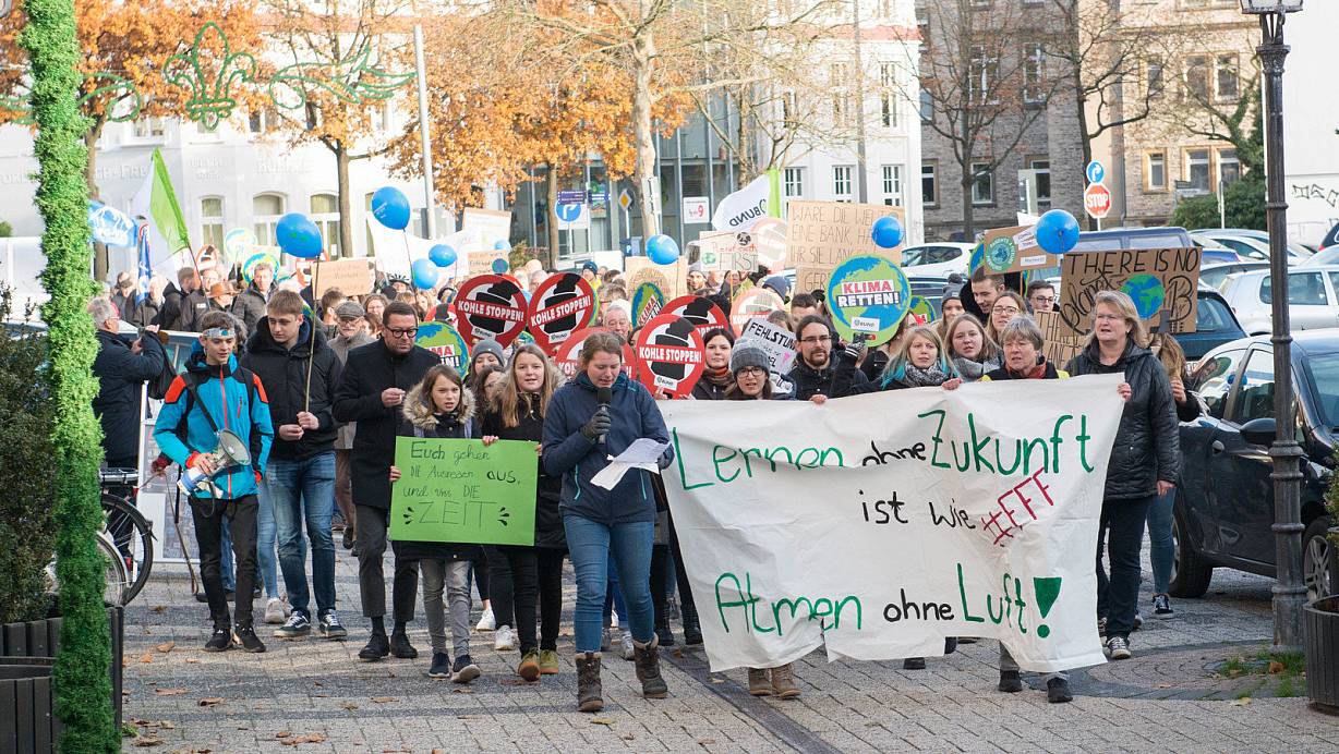 Anlässlich des weltweiten Klimastreiks ziehen Fridays for Future und Unterstützer durch die Innenstadt. Die Demonstrierenden fordern schnelleres Handeln.