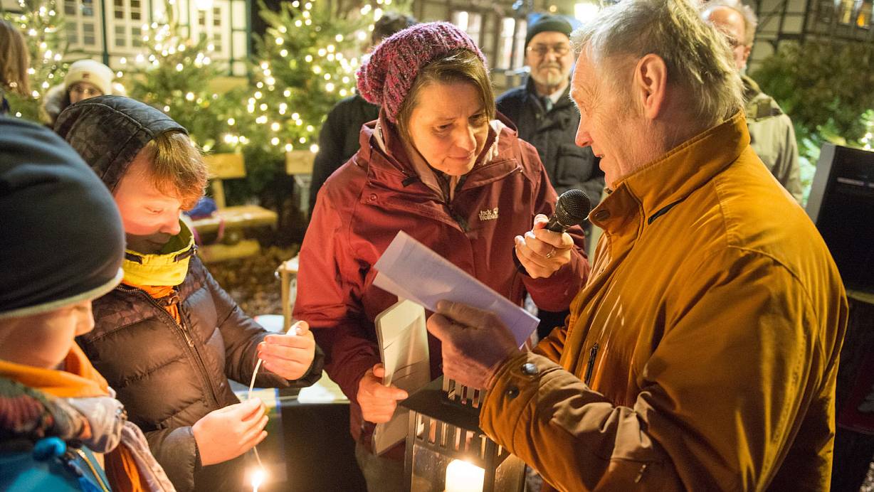 Bruno Papenhoff (r.) ist aus Vlotho gekommen und bringt das Friedenslicht in die Nachbarstadt. | © Ralf Bittner